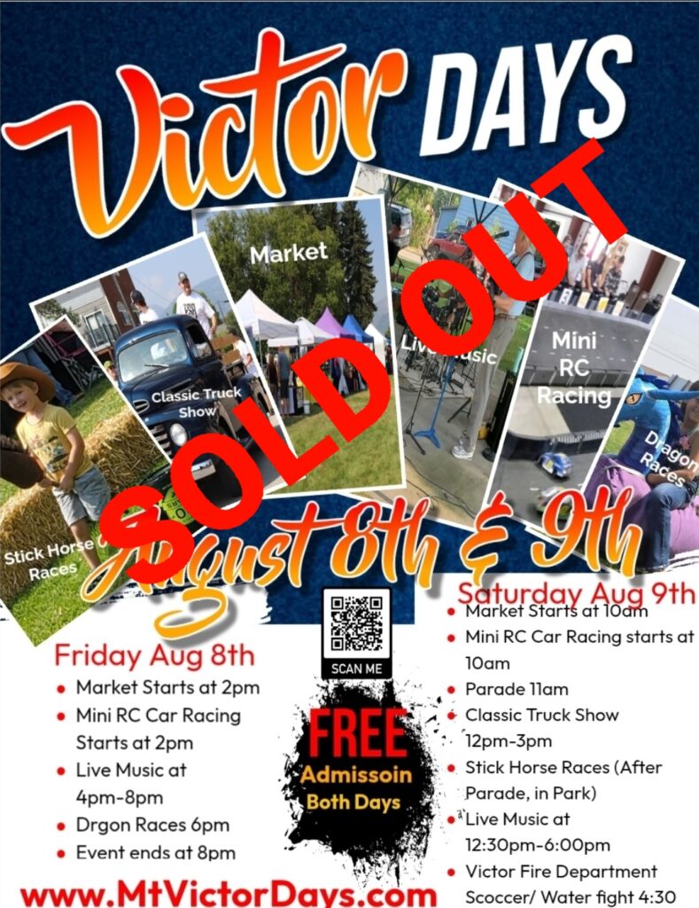 Looking for a fun filled family event to attend? We’re excited to bring to Victor Montana, Victor Days!! This will be a fun filled 2 day event with lots of family activities. Vendor Market, Live Music both days, Face Painting, Amazing food, Beer Gardens, Coffee stand, Bouncy Houses, Miniature RC Races, Dragon Racing, Stick Horse Races and soooo much more!! This event will be held at the Park in Victor, 1 block off HWY 93. Foot traffic will be amazing!! Everyone going down the Highway will see the event and signs leading to the event!!